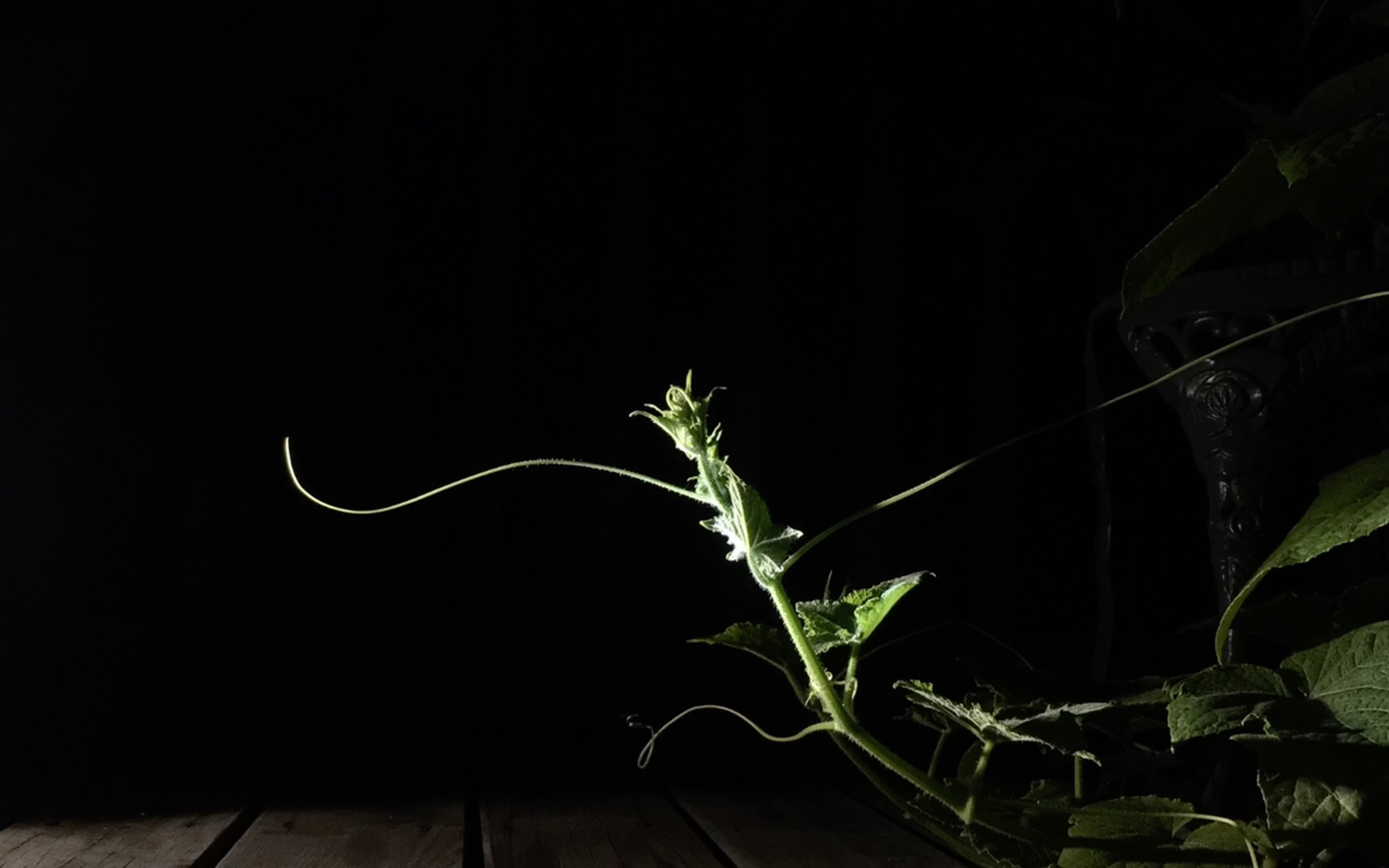 “During the last 40 nights that my eldest daughter lived at home before she went to college, I recorded the gourd vines in our backyard growing in the darkness while she slept. Two years later, as my younger daughter prepared to move out, we grew the gourds again, repeating the ritual. I usually have made my work at night, whenever the kids were asleep. Recording these videos was the last moments of knowing when everyone went to bed.”3